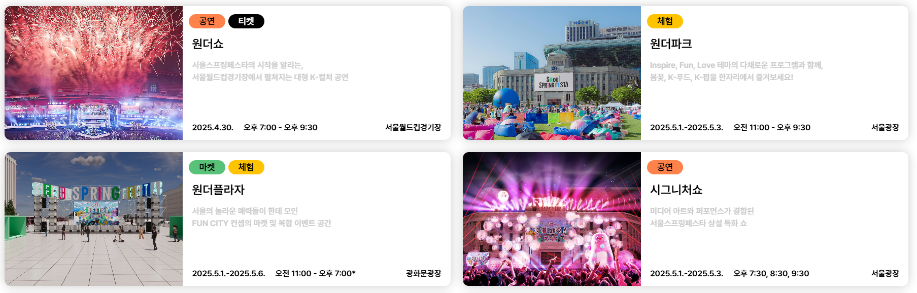 여러분도 이번 봄, 서울스프링페스타에서 잊지 못할 추억 만들어보시길 바랍니다🌸