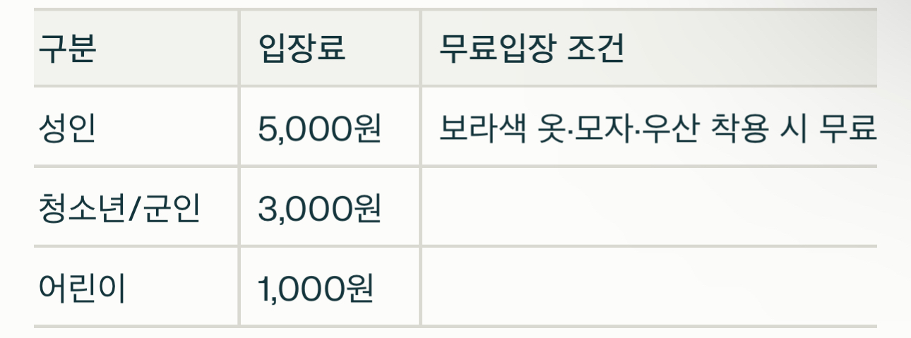 입장료 및 무료입장 팁