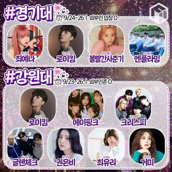 - 상세정보 : 다양한 아티스트의 공연과 함께 즐길 수 있는 음악 축제입니다. 친구들과 함께 신나는 음악을 즐기며 가을을 만끽해보세요.