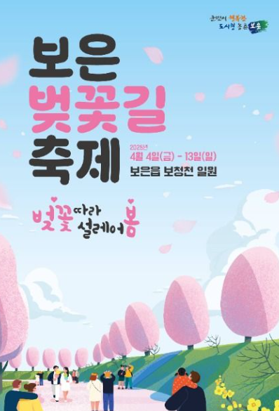 2025년 봄, 충청북도 보은군에서 펼쳐지는 보은 벚꽃길 축제를 놓치지 마세요! 낮에는 화사하고 밤에는 낭만적인 벚꽃 풍경 속에서 잊지 못할 추억을 만들어보세요!