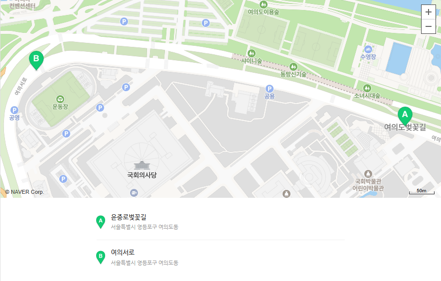축제 기간 동안 윤중로 일대는 차량 통제가 이루어지므로 대중교통 이용을 추천합니다. 여의나루역(지하철 5호선)과 국회의사당역(지하철 9호선)이 가장 가까운 역입니다.